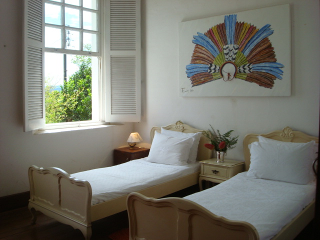Localizada na parte central-oeste da sede, com amplas janelas para o delicioso sol da tarde, a suíte possui duas camas de solteiro e banheiro. Desta suíte também podemos observar o movimento do café durante a colheita que vai geralmente de maio a setembro.